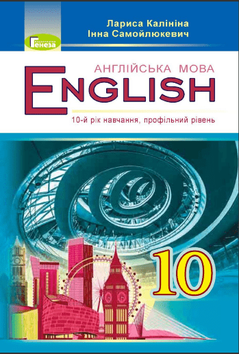 Підручник «Англійська мова» для 10 класу, автори Калініна та Самойлюкевич, створений для комплексного розвитку мовних навичок школярів. Книга охоплює граматику, лексику, читання, аудіювання, письмо та усне мовлення, допомагаючи учням впевнено використовувати англійську у повсякденному спілкуванні та навчанні. У виданні подано тексти для читання, діалоги, практичні вправи, тести для самоперевірки та завдання для розвитку комунікативних навичок. Підручник структурований за темами, що робить його зручним для уроків, самостійного опрацювання та підготовки до контрольних робіт і зовнішнього незалежного оцінювання. Він сприяє розвитку мовної компетенції, критичного мислення та впевненості у застосуванні знань на практиці.