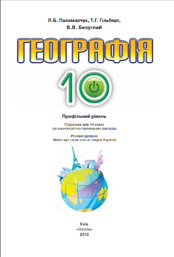 Підручник «Географія» для 10 класу, автори Паламарчук, Гільберг та Безуглий, присвячений вивченню географії світу, його природи, ресурсів, населення та господарства. У ньому подані карти, ілюстрації, схеми й статистичні дані, які допомагають краще зрозуміти закономірності розвитку сучасного світу. Книга містить різнорівневі завдання, питання для повторення та практичні роботи, що сприяють системному засвоєнню знань. Підручник зручний для підготовки до уроків, контрольних і самостійного опрацювання, розвиває аналітичні навички, просторове мислення та вміння працювати з географічною інформацією.