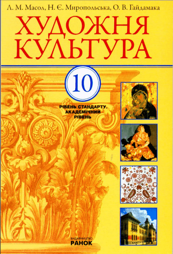 Підручник «Художня культура» для 10 класу, автори Масол, Миропольська, Гайдамака, знайомить учнів із мистецькою спадщиною України та світу. У книзі подано матеріал про архітектуру, живопис, музику, театр, кіно та сучасні напрями культури. Ілюстрації, схеми та цікаві факти допомагають глибше зрозуміти роль мистецтва в житті людини й суспільства. Підручник містить завдання для аналізу творів, розвитку естетичного смаку та творчих здібностей учнів. Видання стане корисним для підготовки до уроків, проектів і самостійного опрацювання тем.