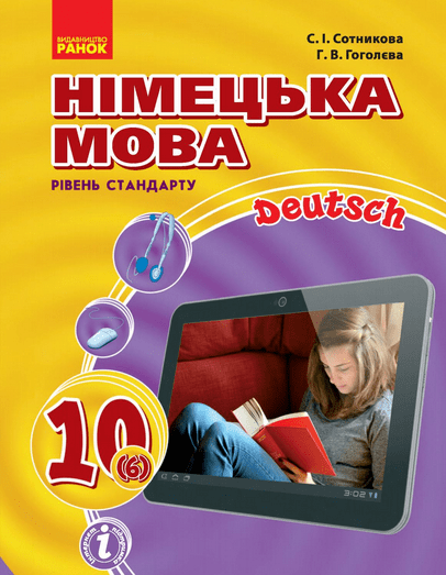 Підручник з німецької мови для 10 класу (6-й рік навчання) авторів Сотникової та Білоусової укладено за новою навчальною програмою. Видання розраховане на учнів, які почали вивчати мову з 5 класу, і продовжує системно формувати комунікативні компетентності.