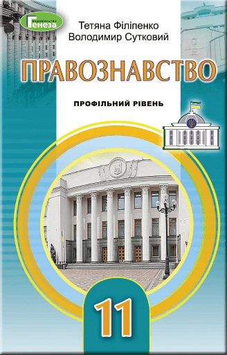 Підручник «Правознавство» для 11 класу, автори Філіпенко та Сутковий, знайомить школярів з основами права, державного устрою та правової системи України. У книзі подані теоретичні пояснення, приклади з життя, документи, а також завдання для аналізу й практичні вправи. Підручник структурований за ключовими темами, що дозволяє ефективно готуватися до уроків, контрольних робіт та іспитів. Видання сприяє формуванню правової культури, розвитку критичного мислення й розумінню прав та обов’язків громадян у сучасному суспільстві.