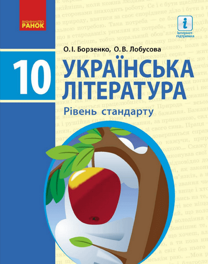 Підручник з української літератури для 10 класу (рівень стандарту) автора Олександра Борзенка укладено за новою навчальною програмою. У ньому представлено основні твори шкільного курсу, біографії письменників, огляд літературних напрямів та аналіз художніх текстів.